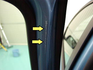 ![]() 傷はうっすらと残っております 膜厚はまだ十分ですのでさらに磨くことは可能なのですが オーナーさまが気にされてこすり取ろうとされた矢印の 部分が盛り上がっているためにその部分だけ下地が 出てしまう危険があります したがってここで止めました |