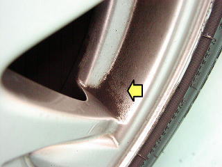 ![]() ホイールのボルトまわりの汚れ 通常の洗車時にはなかなか面倒な部分では? |