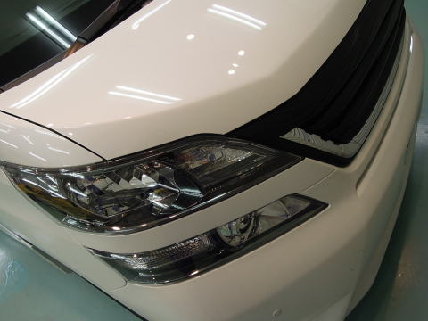 下地磨き、完了いたしました 元々平滑感のあるトヨタのパールホワイトですが、 磨きキズやそれに起因するもやもやっとしたオーロラを除去することにより より艶やかになったと思います! とにかく艶やかさとパリッパリの撥水性と耐久性をお求めのオーナーさま、 ご選択は迷わずG’ZOX「ハイモースコート」、、、正解です! この後、、再洗車、徹底した水切り&乾燥、 室内温度20度以上でのボディコーティング、 窓ガラス下地磨き&超耐久撥水加工、ホイールコート、室内清掃、細部処理と続きます 下地作り・磨きについて コーティング剤と施工環境について |