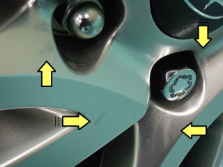 ![]() スバル車お決まりのホイールボルト周りのグリスの固着 |