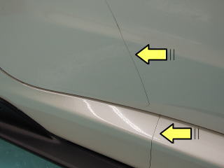 ![]() リアフェンダー飛び石キズ防止フィルムまわりは フィルム断面に汚れが付着して輪郭が出てしまいます |
