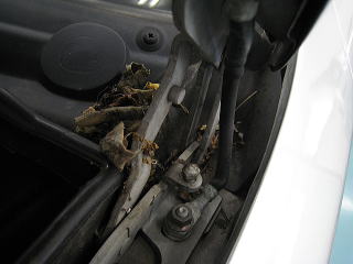 ![]() ボンネット内の枯葉 |