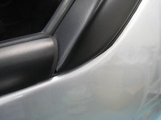 ![]() 黒樹脂製のBピラーに葉っぱのあとがクッキリ |
