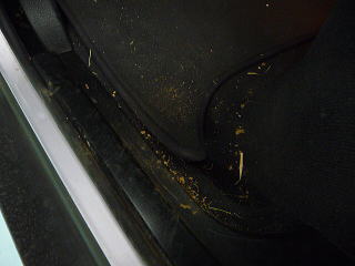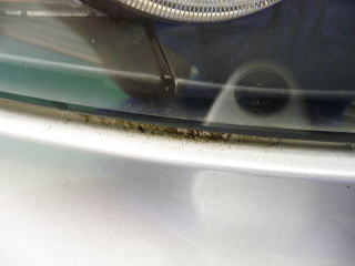 今回のオーナーさまのお悩みは、樹液による染み とにかく洗車では除去不可能な広範囲に渡る樹液による染みがベットリ また、樹液染みの原因と思われる枯葉がボディの至るところに詰まっていて 水やほこりの流れをせき止めています 先ずは各部のすき間に入り込んだ枯葉をエアーで吹き出してから堆積した汚れを落としていきます |