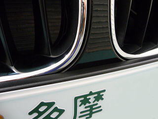 ![]() ナンバーがキドニーグリルの下端にかぶさって しまうのがちょっと残念 |