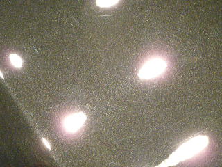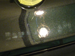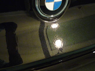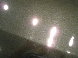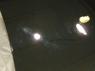 塗装の状態は、納車1ヶ月、走行500キロの新車ですのでフレッシュなのは言うまでもありませんが、 すでに広大なボンネットを中心に、深めの洗車傷が縦横無尽に多数存在 メタリックが入った硬めの塗装なのですが、黒だけに目立ってしまいます |